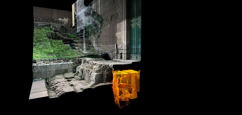 Rilievo-laser-scanner-rapporto-tra-ambiente-sotterraneo-e-strutture-portico-Curia-Iulia-riemerse-dopo-smontaggio-scala-del-Bartoli 23 febbraio 2020 1038 × 494 Ipogeo scoperto nel Foro Romano: è il cenotafio per il culto di Romolo Rilievo laser scanner del rapporto tra l’ambiente sotterraneo (in arancio) e le strutture del portico della Curia Iulia, riemerse dopo lo smontaggio della scala del Bartoli – courtesy Parco archeologico Colosseo