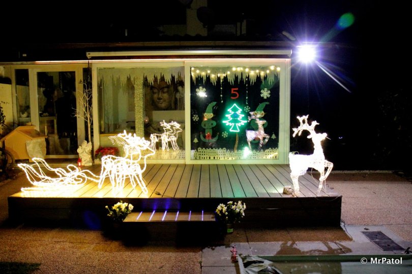 Some Advent windows dressed up for the living Advent calendar set up by the residents in the little hamlet of Manno, in the district of Toano, Reggio Emilia, Italy.