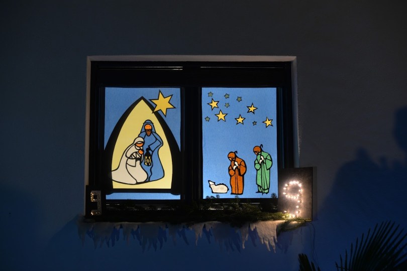 Details of the Advent windows dressed up for the living Advent calendar set up by the residents in the little hamlet of Manno, in the district of Toano, Reggio Emilia, Italy.