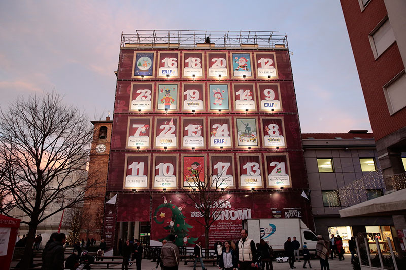 Calendario dell’Avvento del Natale legnanese 2019 firmato Giuseppe Cozzi, papà di Pietro noto imprenditore e presidente Fondazione Famiglia Legnanese, Legnano, provincia di Milano, Lombardia, Italy –