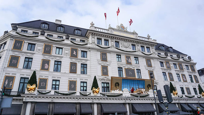 The Hotel D’Angleterre sited near Nyhavn, Copenaghen, which is famous for its yearly Christmas facade – here you can see the Advent calendar which was dedicated to Hans Christian Andersen’s fairy-tales.