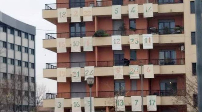 Un maxi calendario dell’Avvento sulla facciata delle “Terrazze del Roccolo“ a Canegrate, comune della città metropolitana di Milano, in Lombardia. Hanno partecipato all’iniziativa varie associazioni culturali, realizzando ognuna una raffigurazione natalizia, ed i piccoli condomini che ospitano il calendario, che hanno realizzato una delle 24 caselle.
