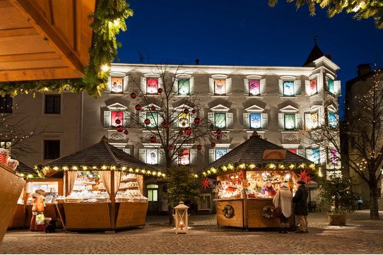 One of the giant Advent calendar set up on Christmas time in one of the 5 original Christmas market in South Tyrol, Italy