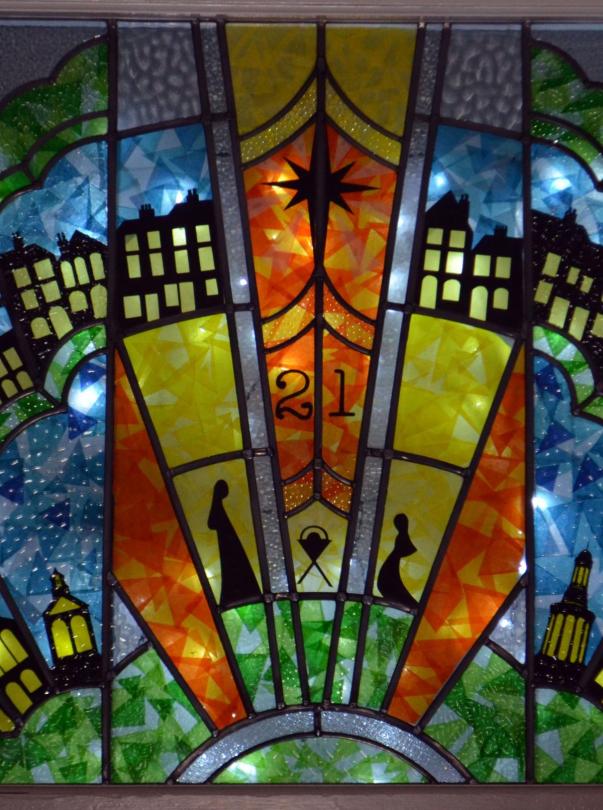 Another Advent window in Saltaire, the Victorian model village sited in Shipley, part of the City of Bradford Metropolitan District, in West Yorkshire, England.