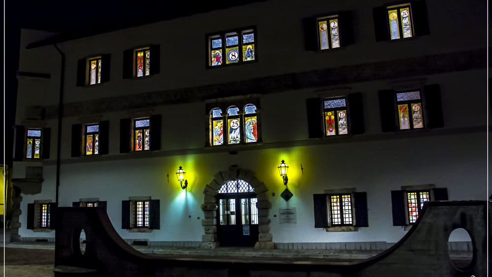 “Palazzo Veneziano” turned into a giant Advent calendar in Malborghetto-Valbruna, in the province of Udine, Friuli-Venezia Giulia, Italy.