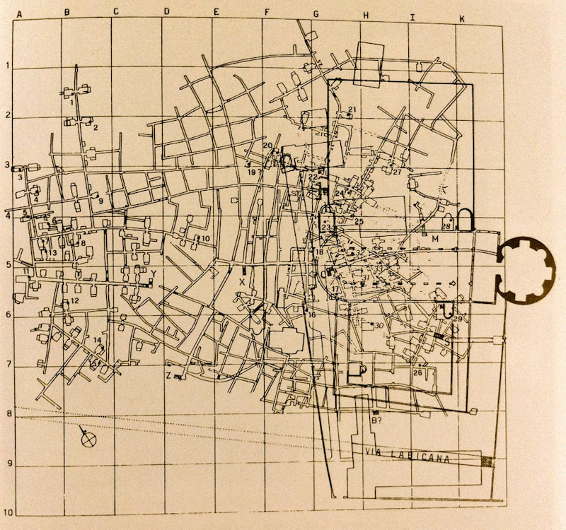 According to the authors, the burial site of St. Peter may be in the Catacombs of the Sts. Marcellinus and Peter (part of the archaeological site “ad Duos Lauros”, in the district of Tor Pignattara). As a matter of fact, that area was part of the ancient “Fundus Laurentum” (or Laurentus), an imperial property of the Emperor Constantine’s mother Helen just spreading between “via Prenestina” and “via Labicana” from “Porta Sessoriana” (now “Porta Maggiore”) to “Mons Gabus” (the mausoleum of “Monte del Grano” near the actual “Piazza dei Tribuni”).