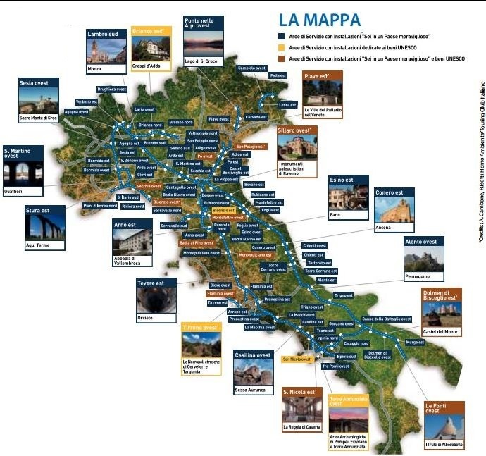 - Foto Mappa siti Unesco Italia: Album beniculturalionline – news, dall’ articolo di Pierpaolo Dori, “Italia, i siti Unesco lungo la via della bellezza”, Beni Culturali Online News, 01-12-2018