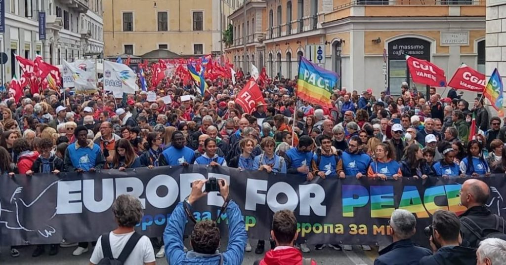 Alcune voci, però, in apparenza continuano ad essere fuori da quel “coro di cambiamento” sollevatosi all’unisono nella manifestazione romana: da un lato un Enrico Letta che, entrato a metà corteo, ribadisce la linea di un PD orientato “in continuità con quello che si è fatto”, sostenuto in qualche modo da Gianni Cuperlo che però riconosce che sia “Giusto che Pd rifletta sul quale sia la finalità di un nuovo invio di armi”, dall’altro una piazza di Milano con meno di un migliaio di persone (molte meno secondo alcune voci) che non si comprende bene se sia pro o contro la guerra, e nello sfondo quella sorta di “pace belligerante” in cui, da Febbraio, molti media assieme ai vertici dell’Europa sembrano quasi intrappolati, invischiati in un circolo vizioso che potrà essere spezzato solo con un deciso cambio di passo; seguendo quella maggioranza ormai non più silenziata che, riprendendo un po’ le parole pungenti di Marco Travaglio de Il Fatto Quotidiano, nessun ricatto immorale (tipo “pace uguale resa di Kiev”), o lista di putiniani immaginari, o campagna di discredito potrà rimettere a tacere. Una maggioranza che peraltro cresce, giorno dopo giorno, in tutta l’Europa .